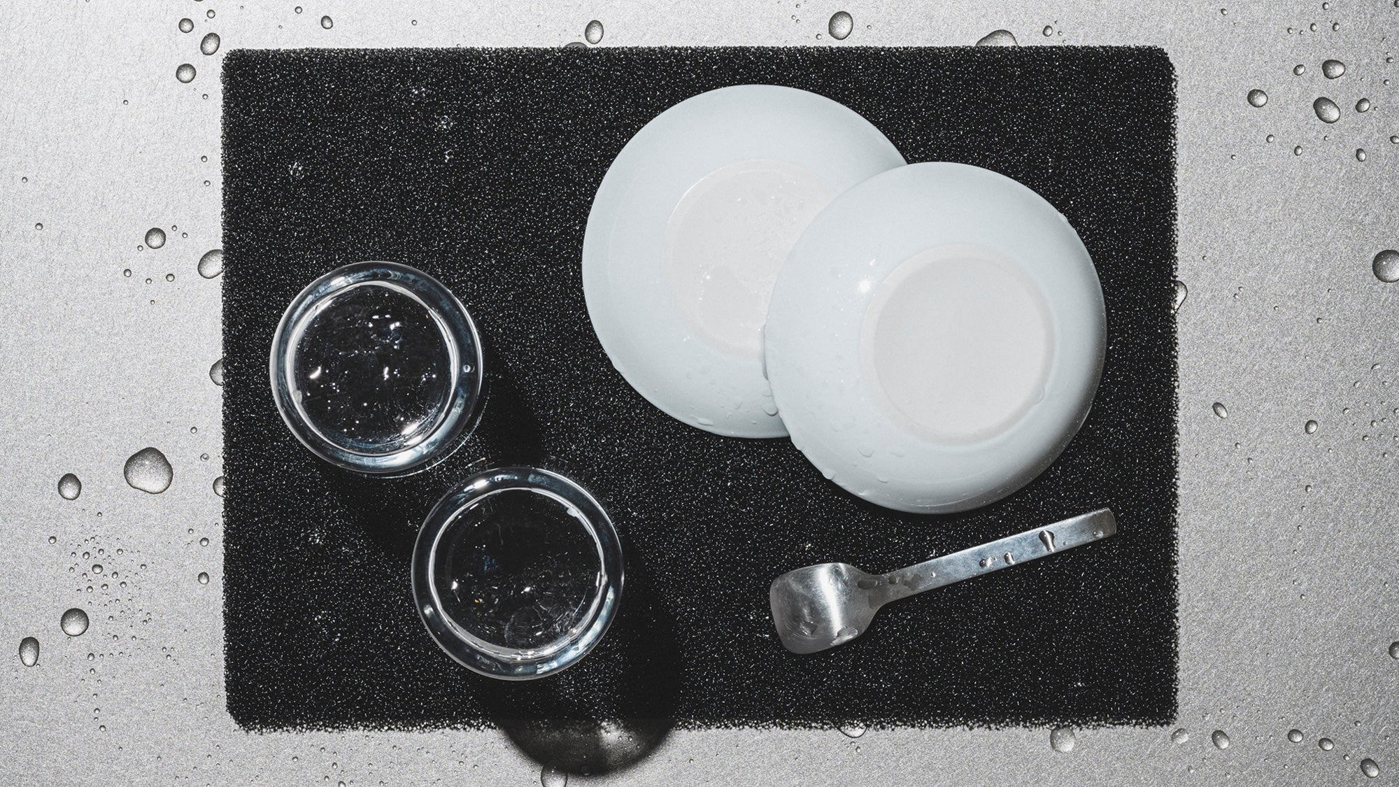 ウレタンの柔らかさが、ガラスや金属の食器をやさしく受け止めます。