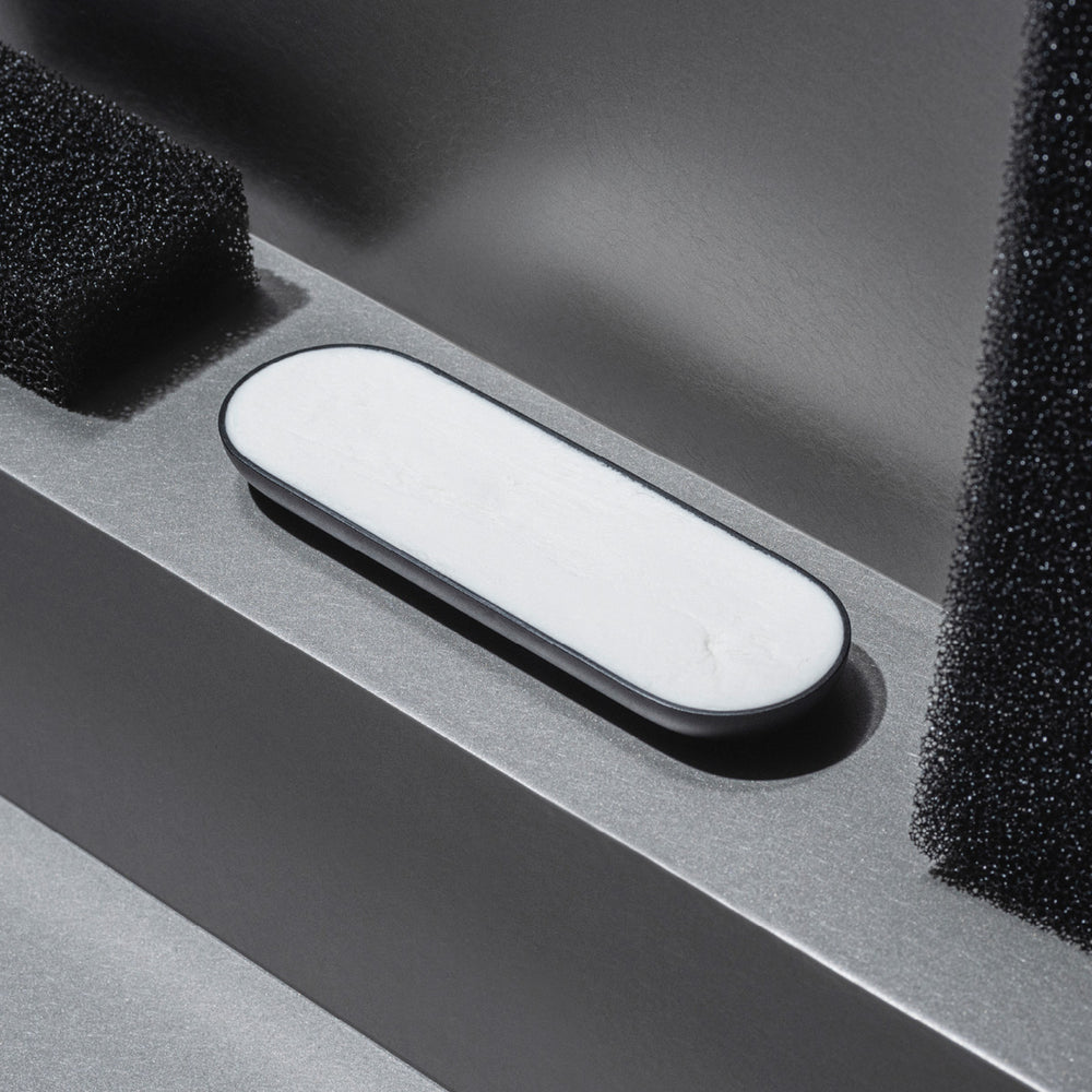TEILEの固形洗剤のために開発された専用容器は、洗剤を最後まで残さず使えるように柔らかな曲面でつなげています。